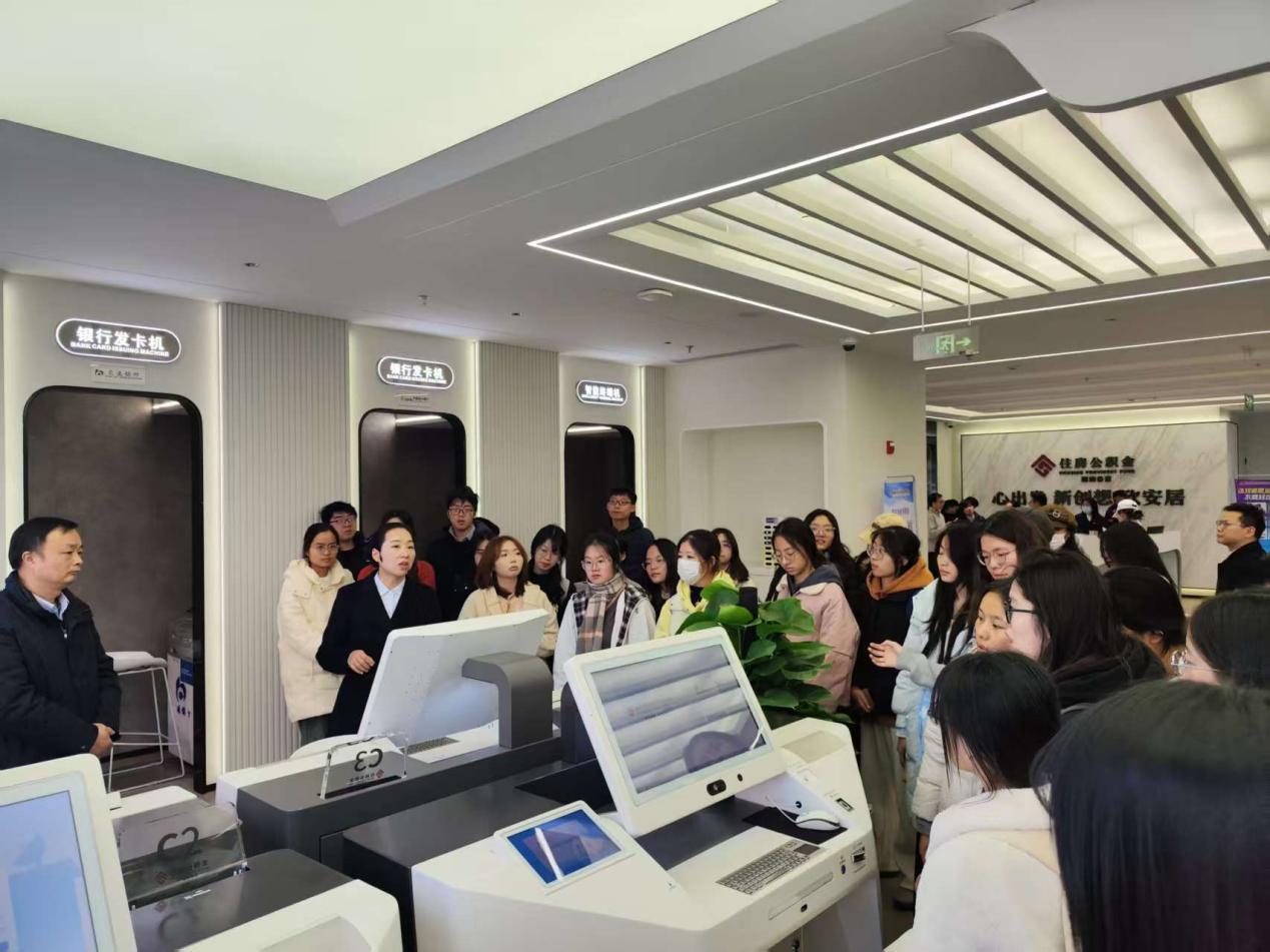 在业务大厅,工作人员详细介绍了公积金缴存、提取、贷款审批等核心业务的办理流程,演示了线上预约、自助终端操作、跨省通办等便民服务功能,让同学们对数智服务创新模式有了直观认识。