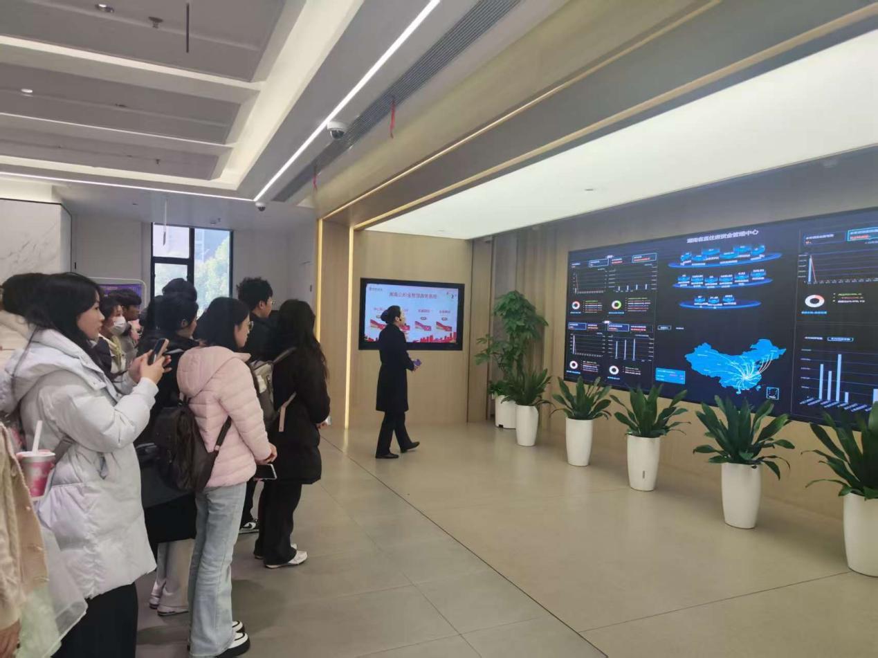 在省直公积金中心工作人员的引导下,师生们先后参观了智慧服务大厅、业务办理大厅政策咨询专区等功能区域。