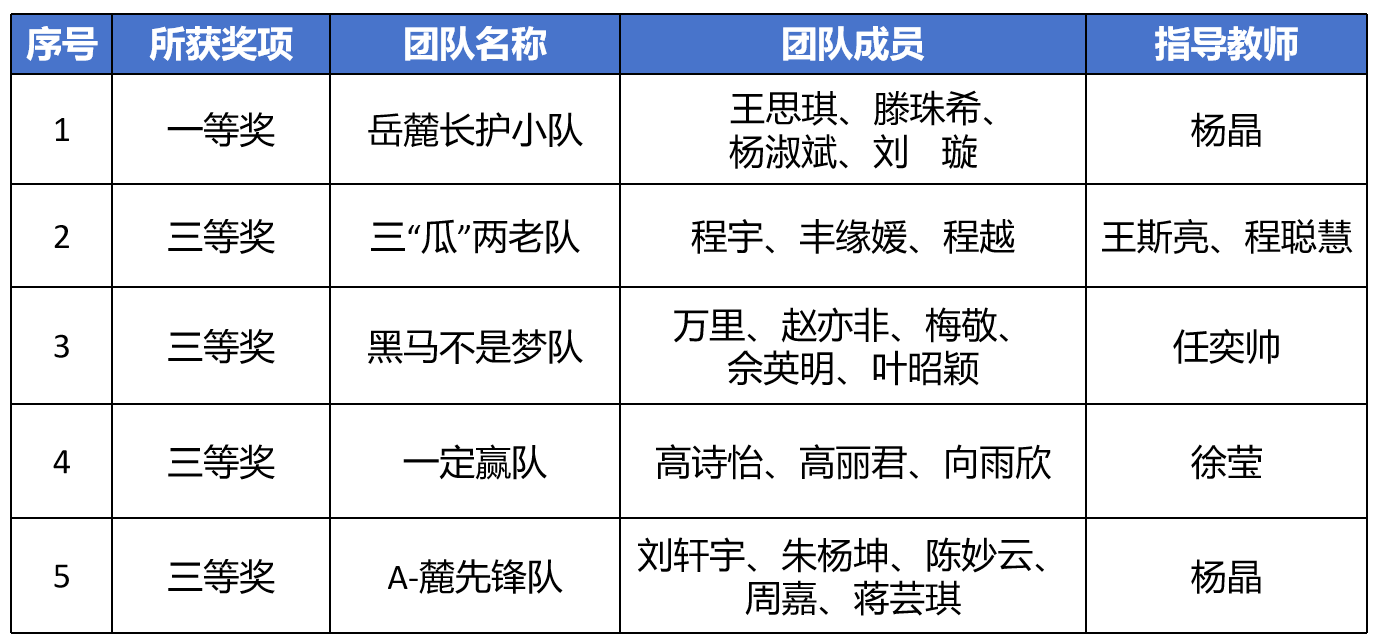 我院师生凭借扎实的专业基础、灵活的思辨能力和默契的团队协作,取得亮眼成绩:“岳麓长护小队”,决赛获得最高分91.17分,荣获一等奖第一名;同时,4支队伍获得三等奖;此外,取得“优秀组织单位”、“优秀指导教师”、“最有价值队员”多项荣誉。