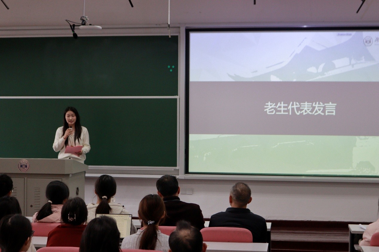 2024级学生代表刘玉萍同学回顾了她与导师颜克高老师沟通交流的点点滴滴,她认为,导师不仅在学业上给予支持,更在人生成长上给予温暖陪伴,让她“在追逐光的过程中,也努力成为更优秀的人”。
